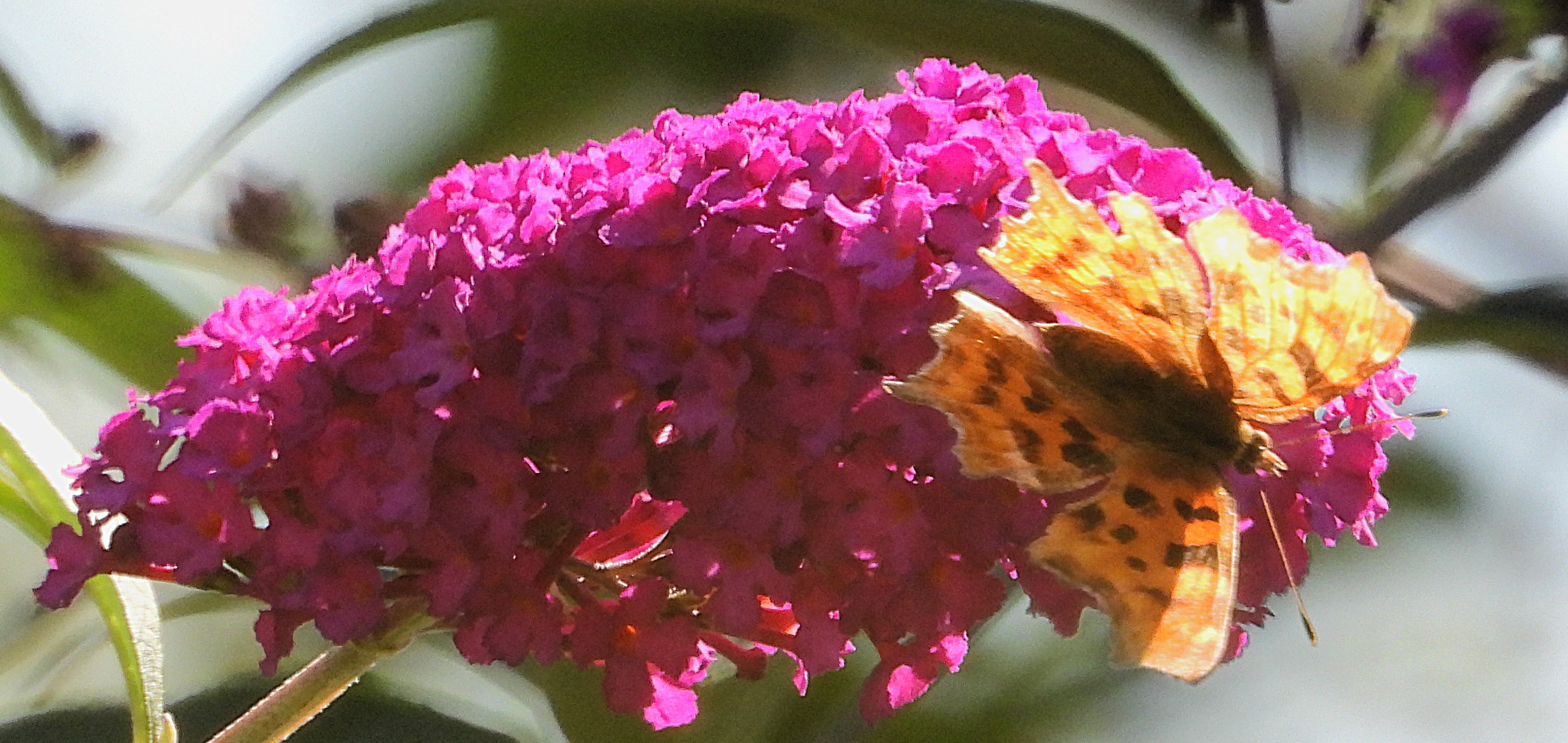 Only a few, and only one or at most two of each species to visit the garden this year, but it is something I suppose. The Comma above (love the name), readily identifiable by its somewhat raggedy appearance has been the only one to begin to stay still long enough to be photographed, but I have also seen a Red Admiral, a Peacock, a Great White and a Brimstone.